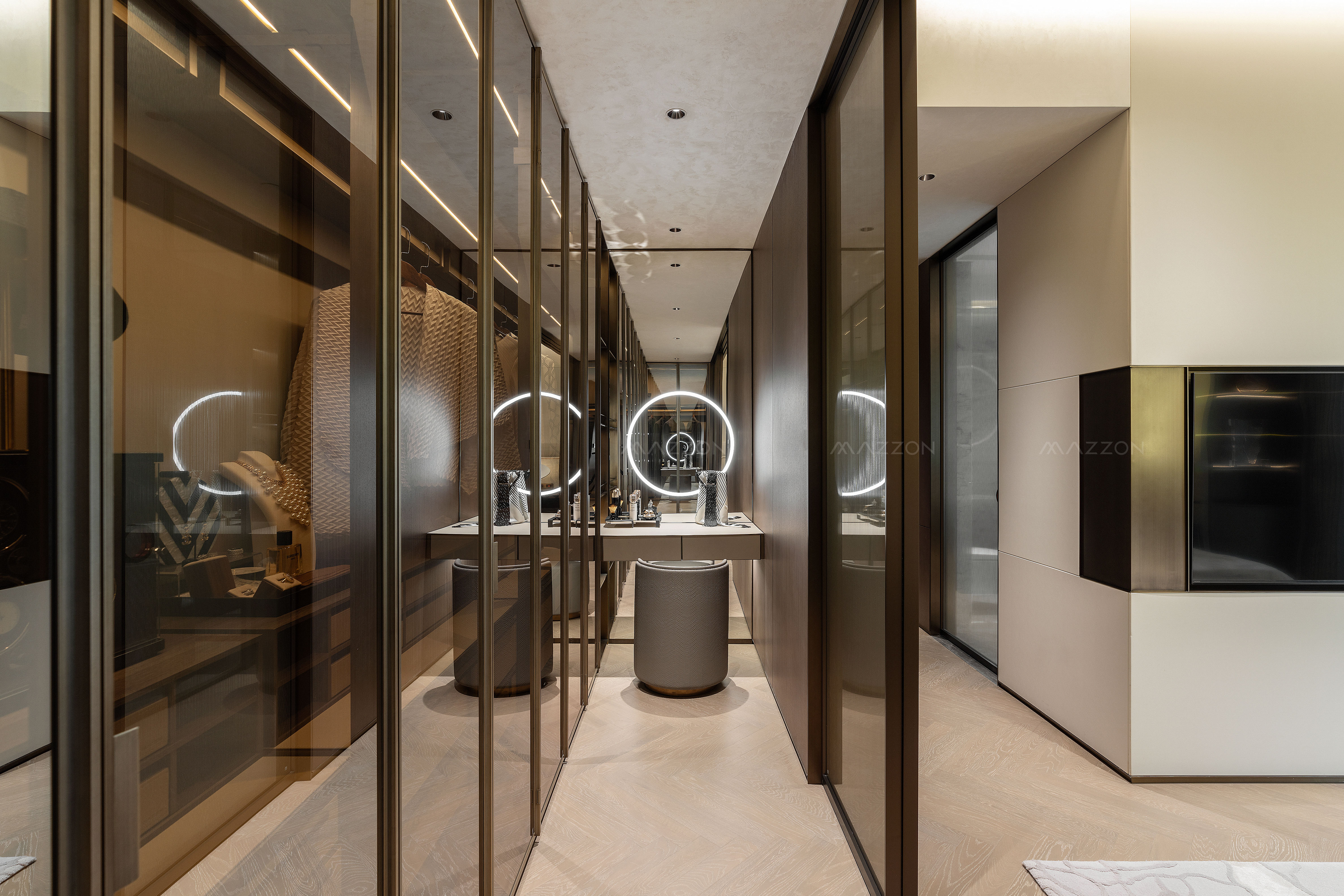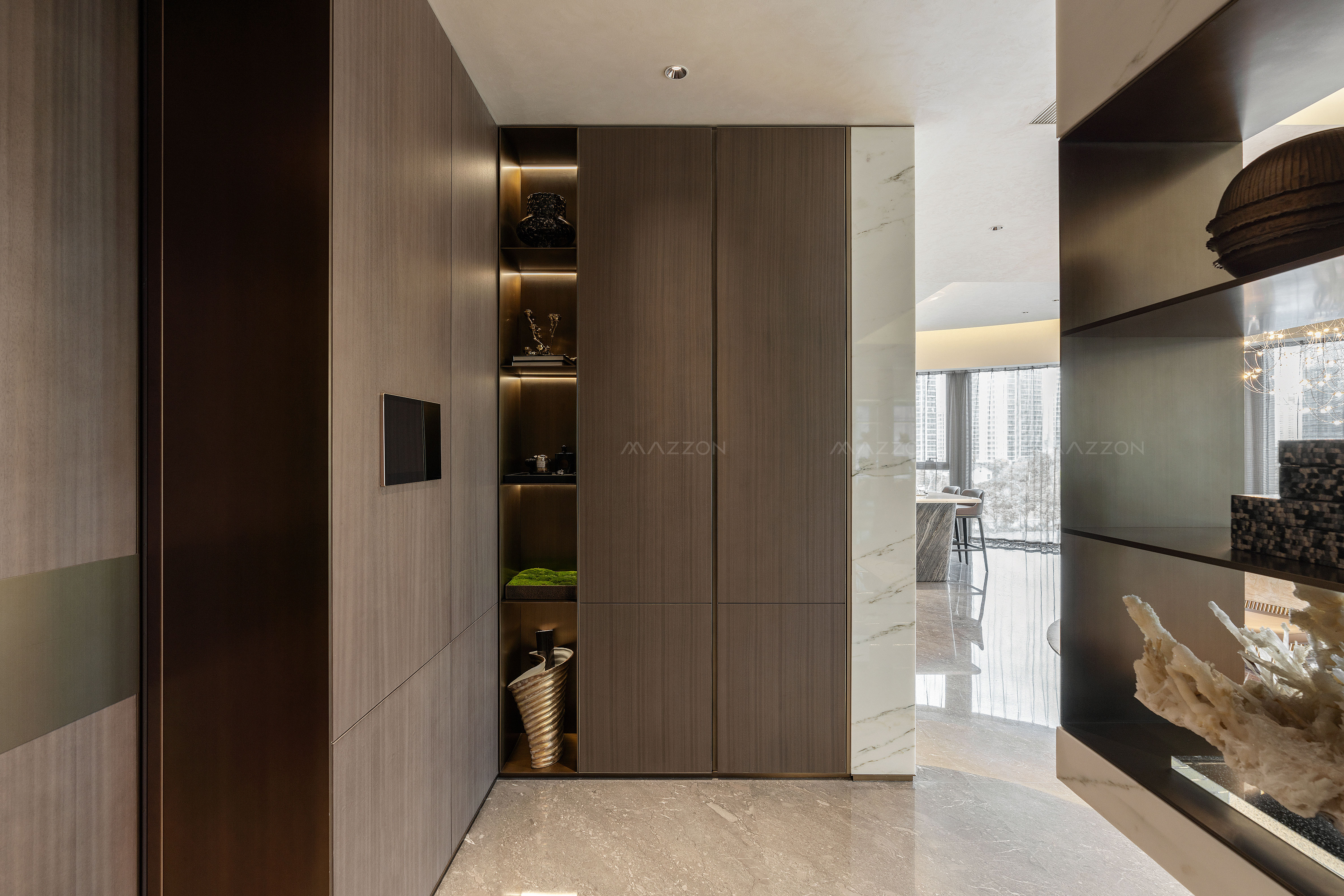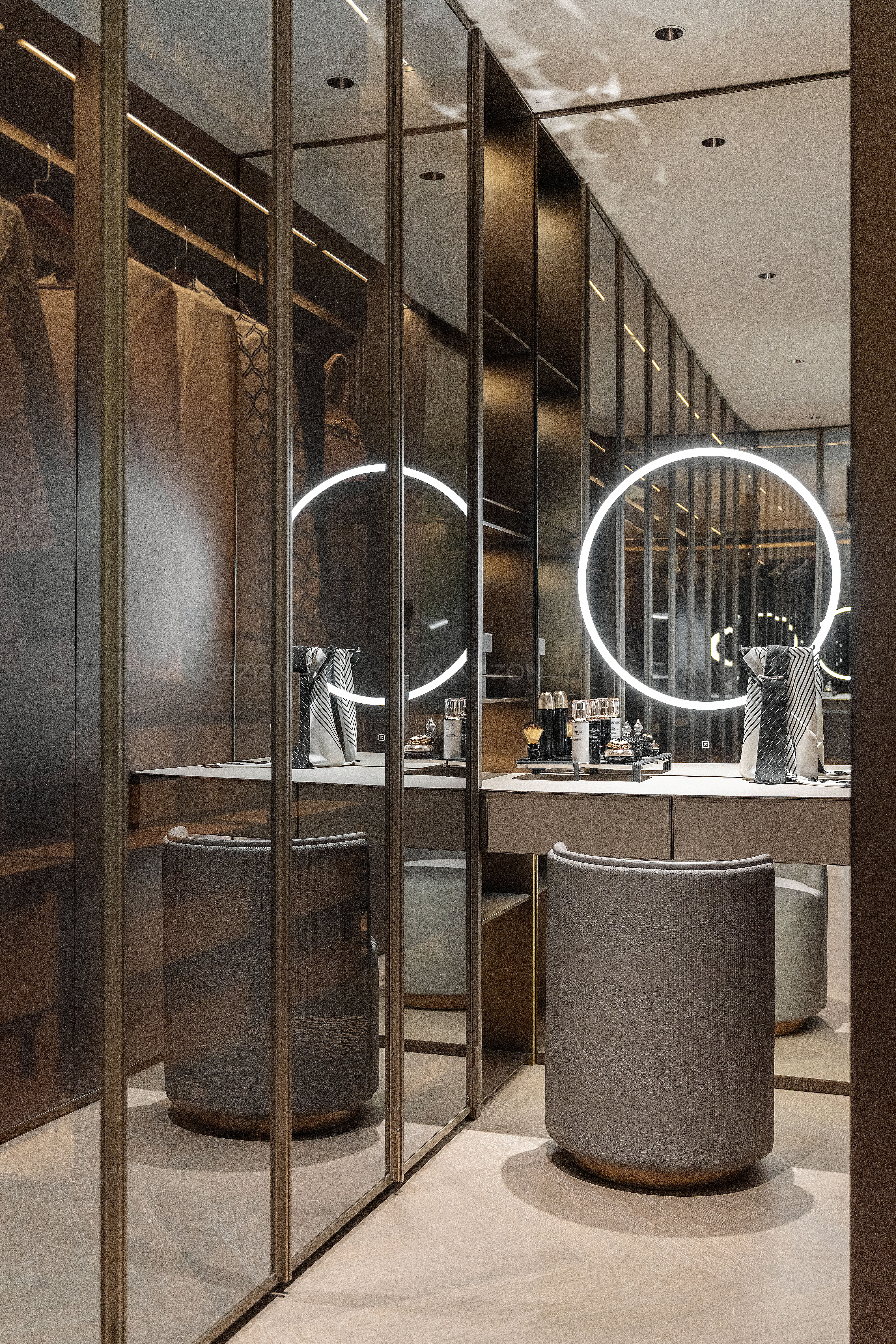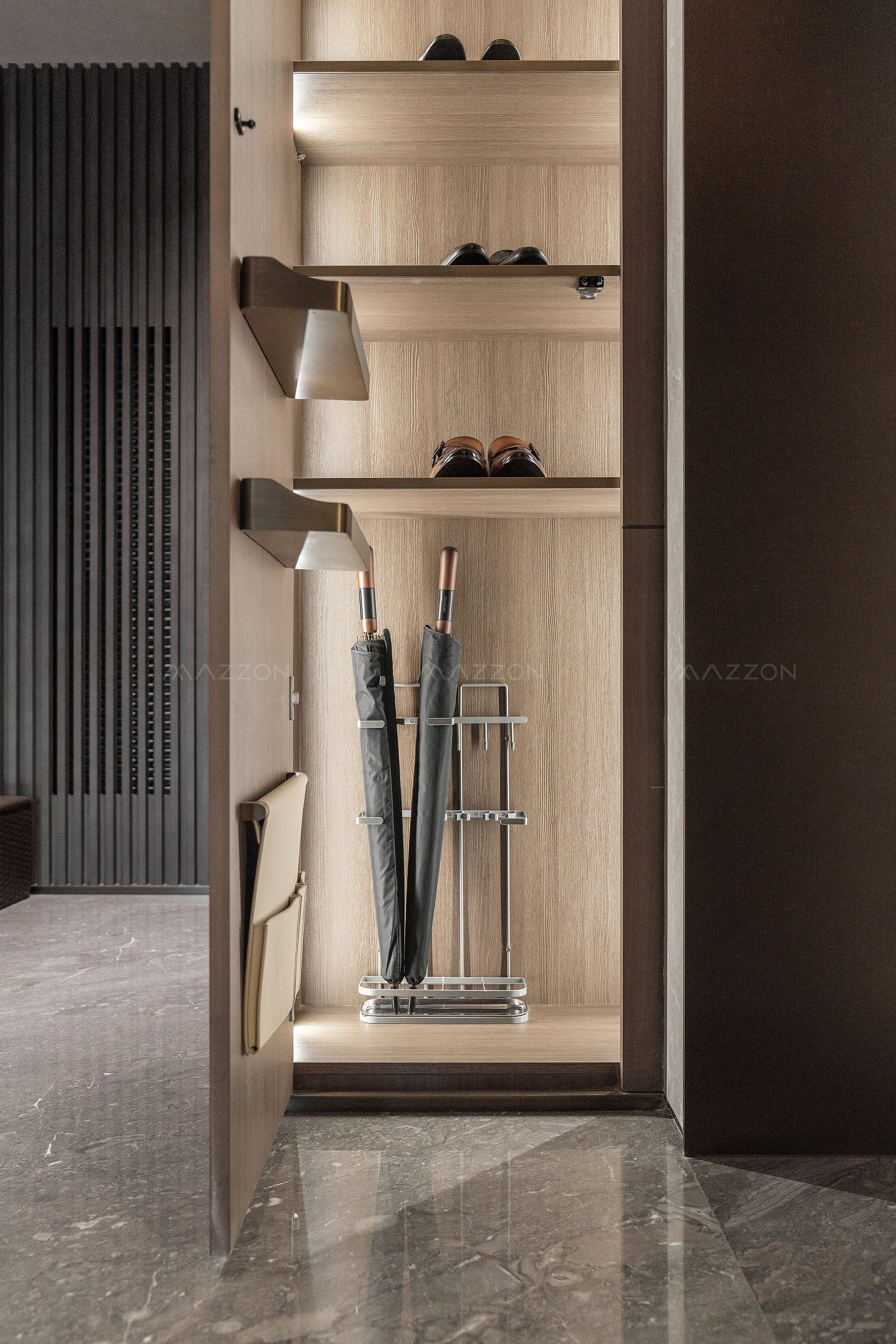 玄关柜、鞋帽间、展示柜、衣帽间、衣柜、梳妆台、镜浴柜、护墙板等产品。