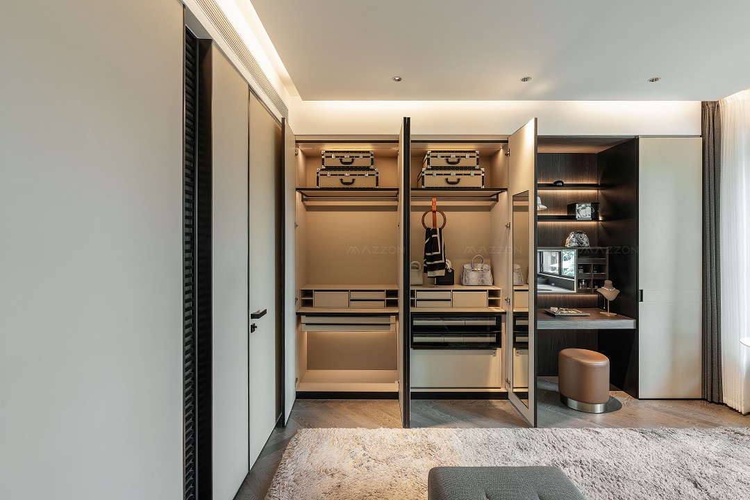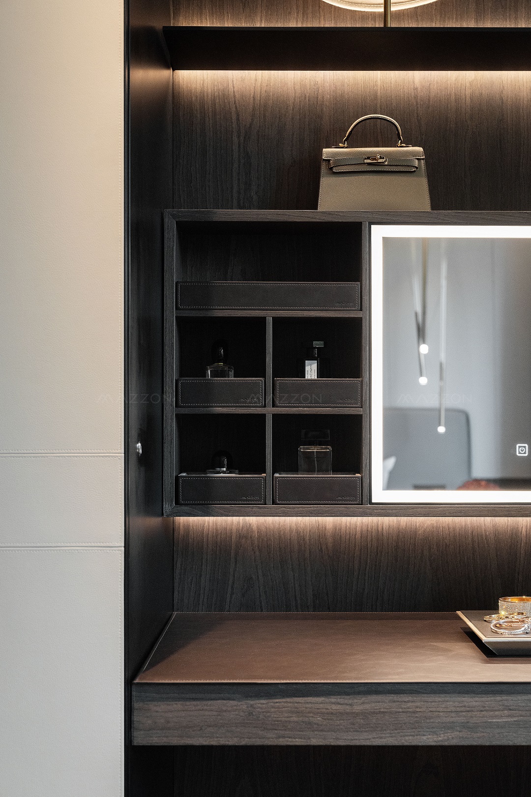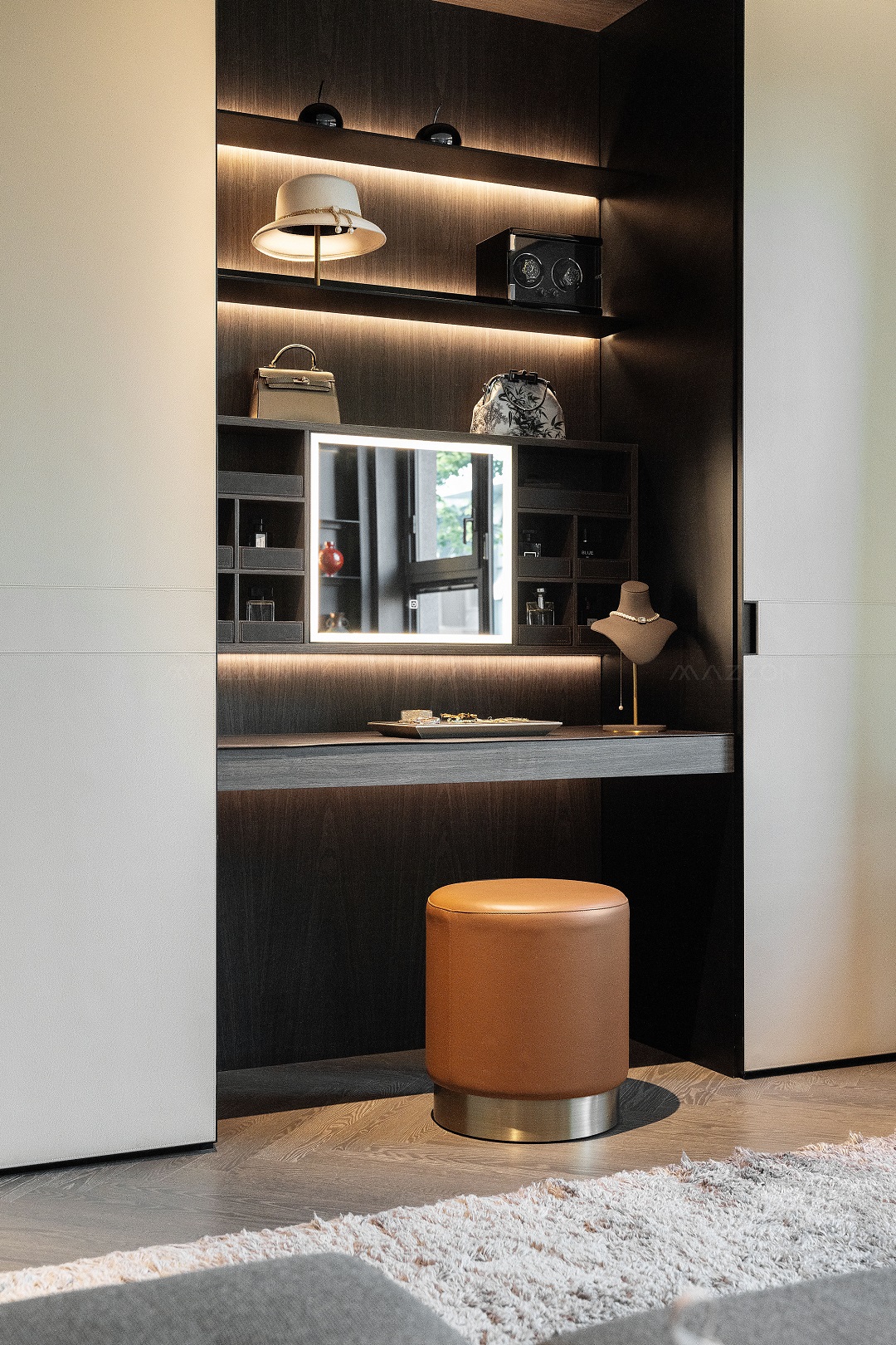 家居方案: 展示柜、衣帽间、衣柜、梳妆台、镜浴柜、护墙板等产品。