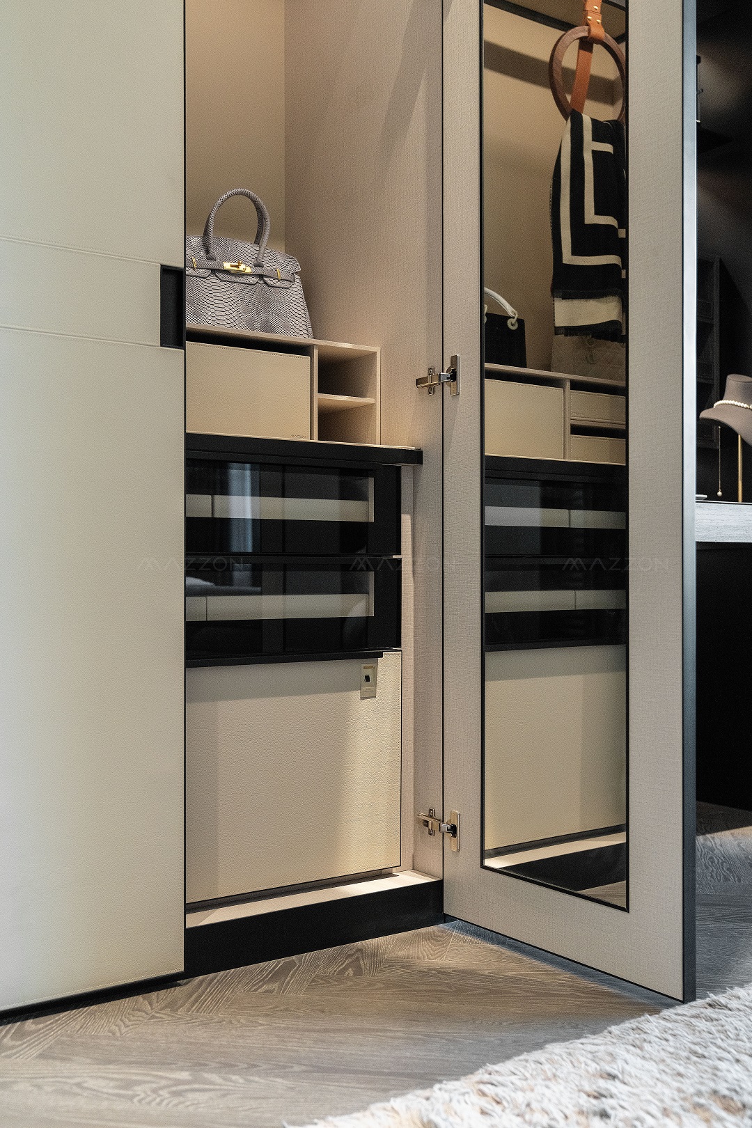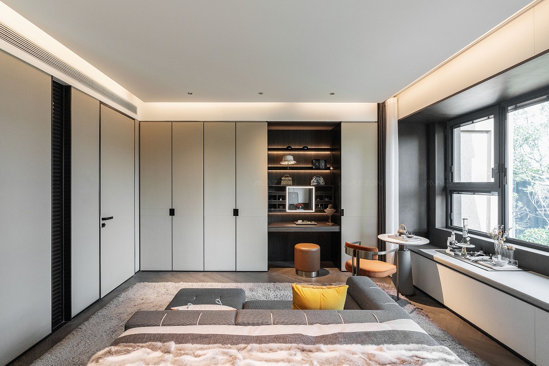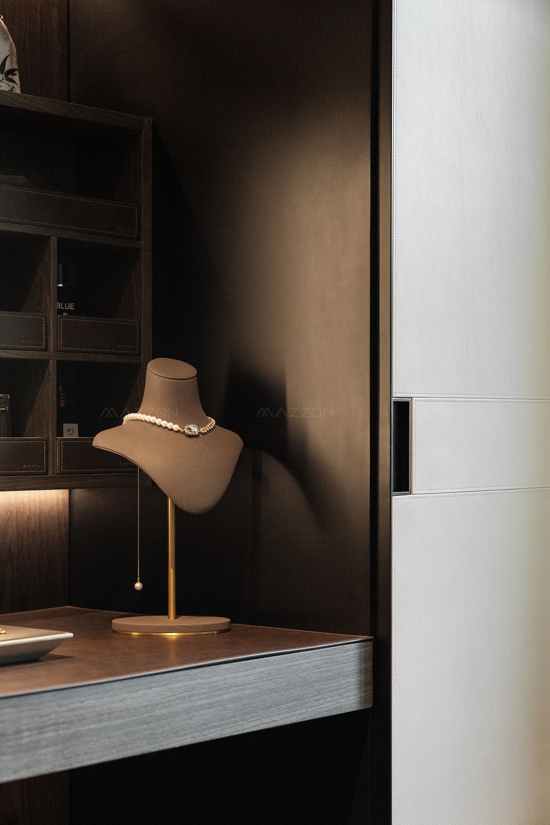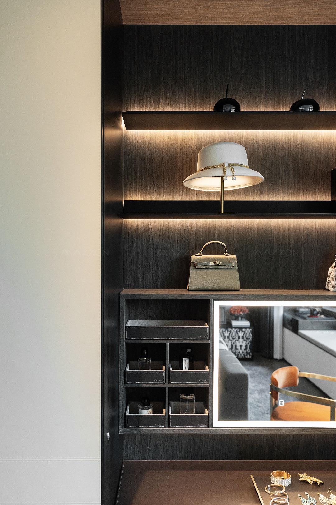家居方案: 展示柜、衣帽间、衣柜、梳妆台、镜浴柜、护墙板等产品。