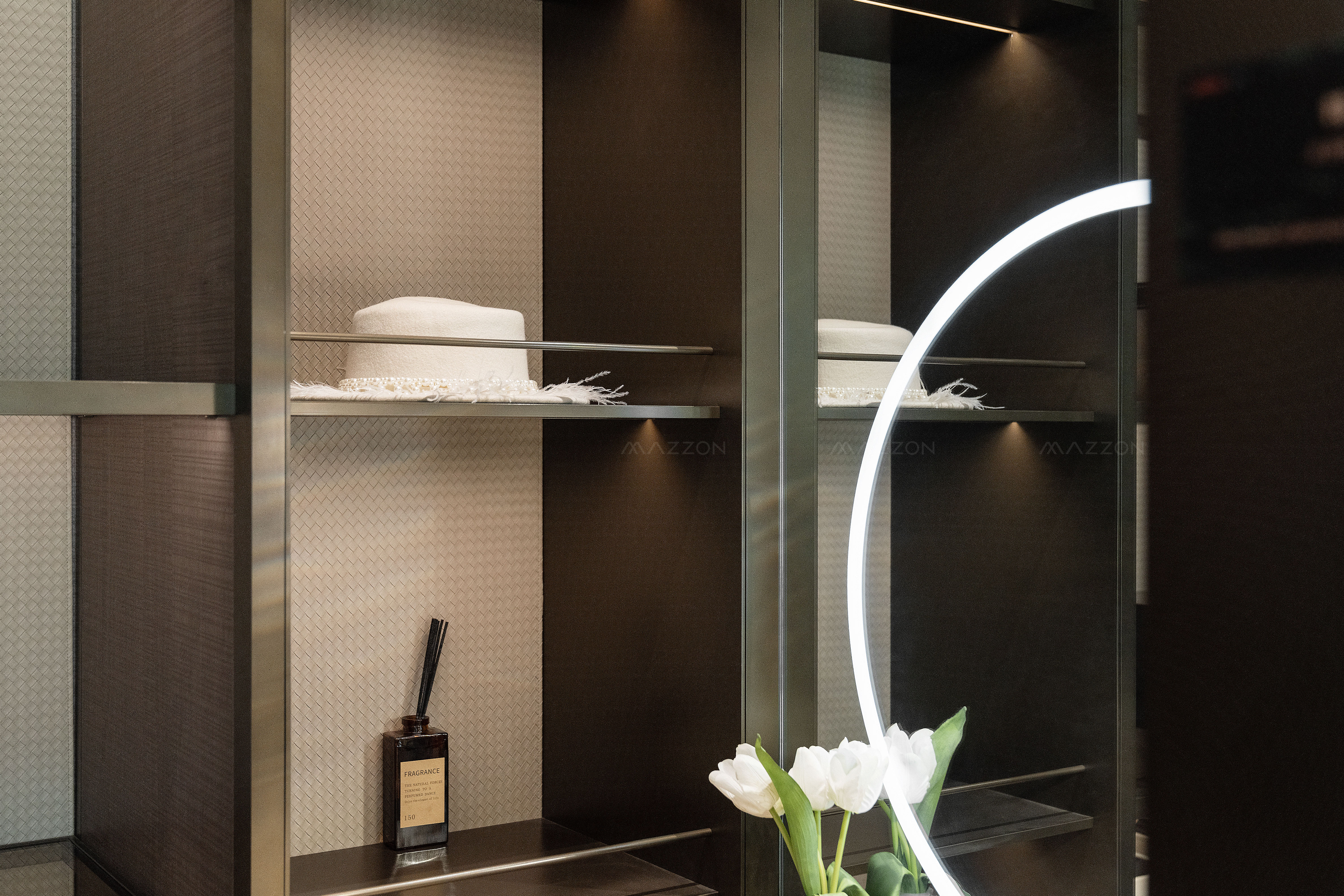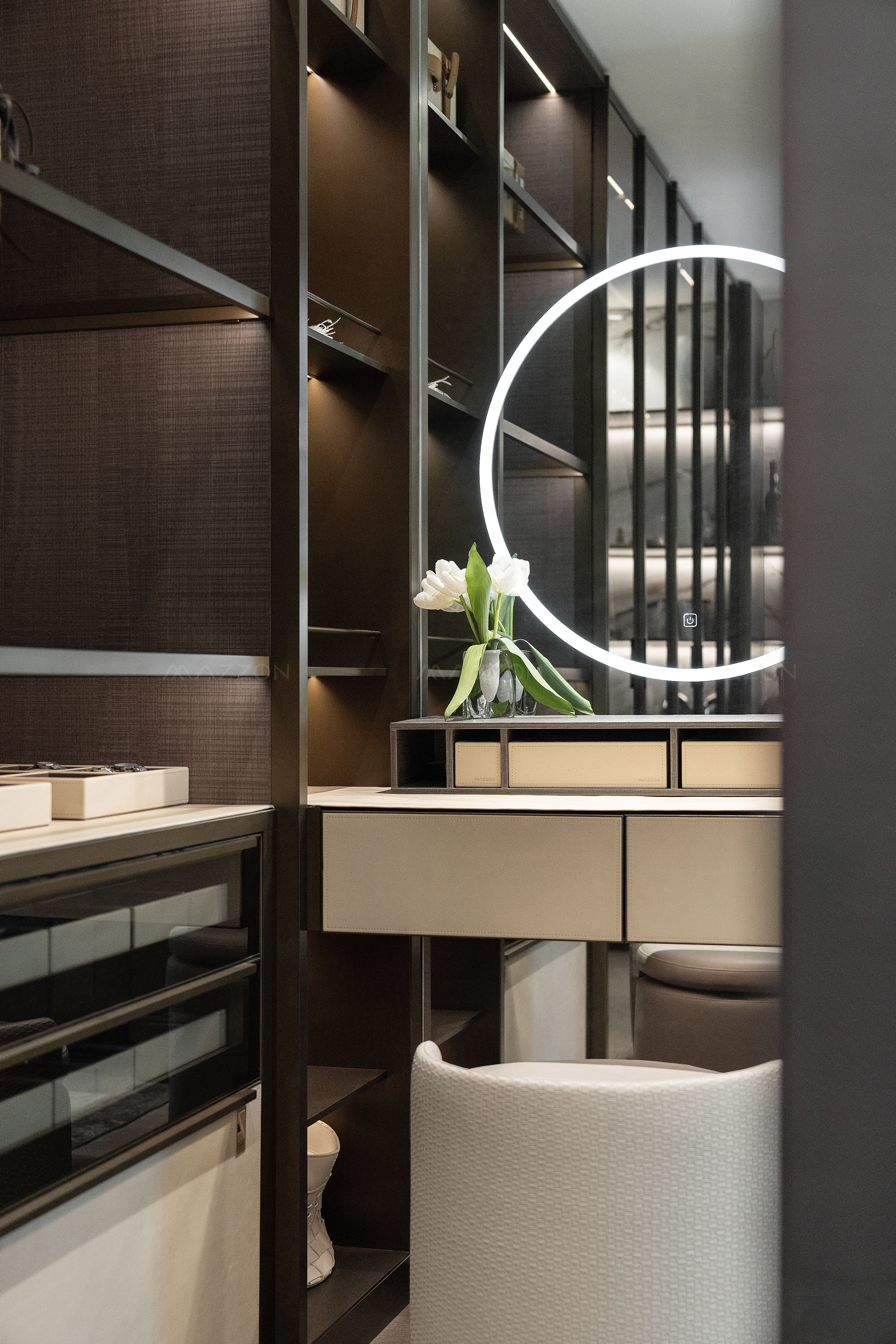 家居方案: 衣帽间、衣柜、梳妆台、镜浴柜、护墙板等产品。