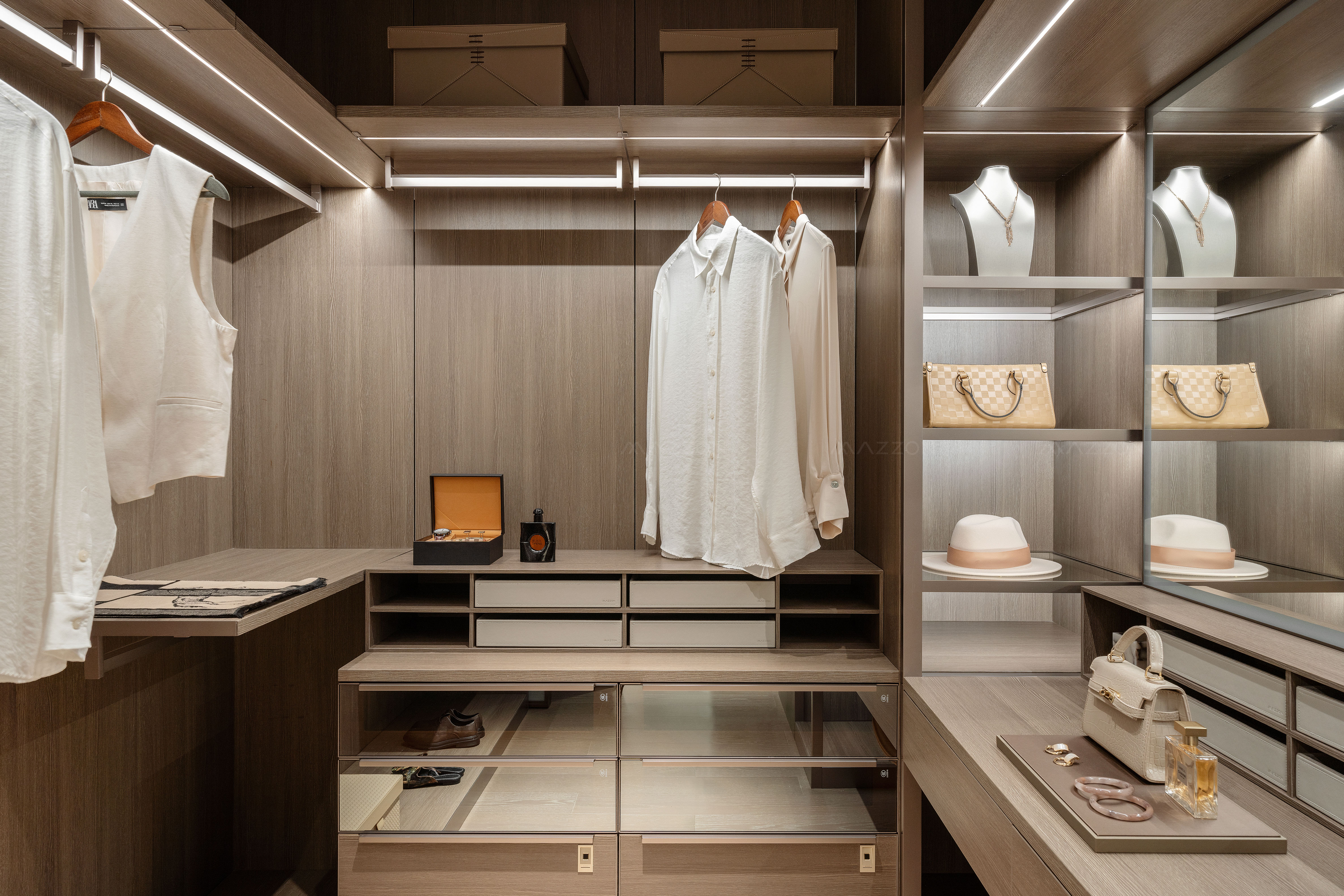 家居方案: 玄关柜、衣帽间、衣柜、梳妆台、镜浴柜、护墙板等产品。